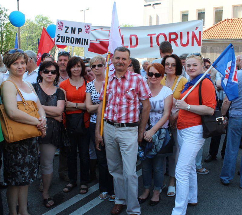 Pod hasłami: "człowiek - nie towar, społeczeństwo- nie hipermarket, godna praca, godna płaca, godna emerytura", 1-maja w samo południe ulicami centrum Warszawy przeszła kilkunastotysięczna demonstarcja OPZZ i SLD.Było barwnie i młodzieńczo, muzycznie, z orkiestrami także młodzieżowymi i piknikowo, bo ten pierwszomajowy pochód zakończył się majówką w parku. Na 1-majowym pochodzie nie zabrakło także nauczycieli. A oto garść fotografii z tego spotkania.